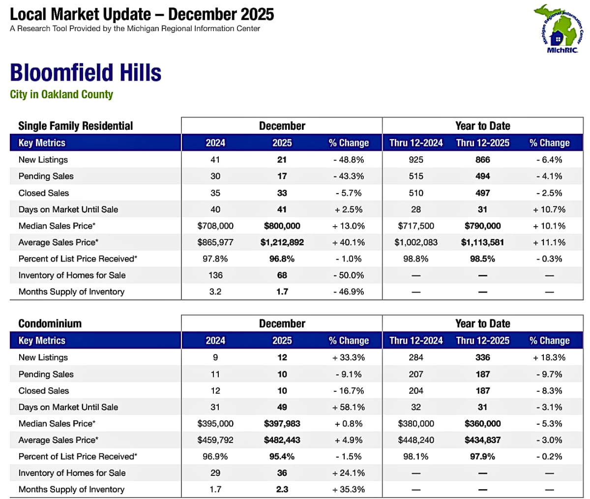 Bloomfield Hills Housing Market Trends ~ January 2026🔍