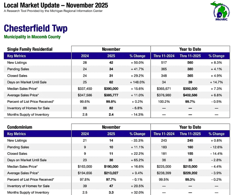 Chesterfield Twp Housing Market Trends ~ December 2025 🔎📊