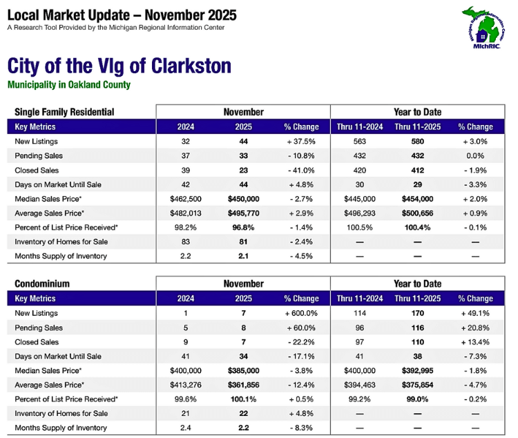 Clarkston Housing Market Trends ~ December 2025 🔎📊