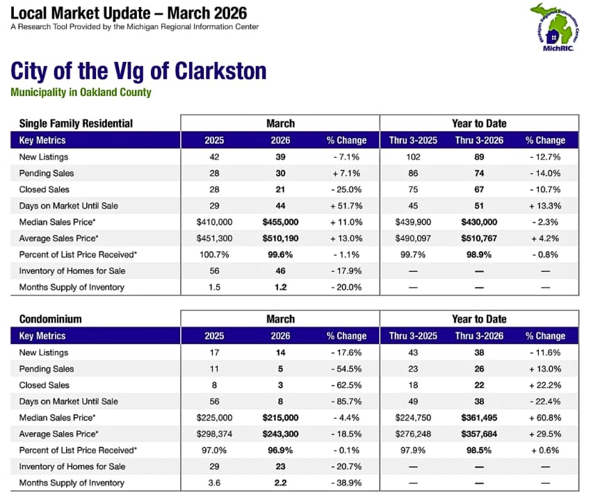 Clarkston MI Housing Market Trends ~ Feb. 2026🔍