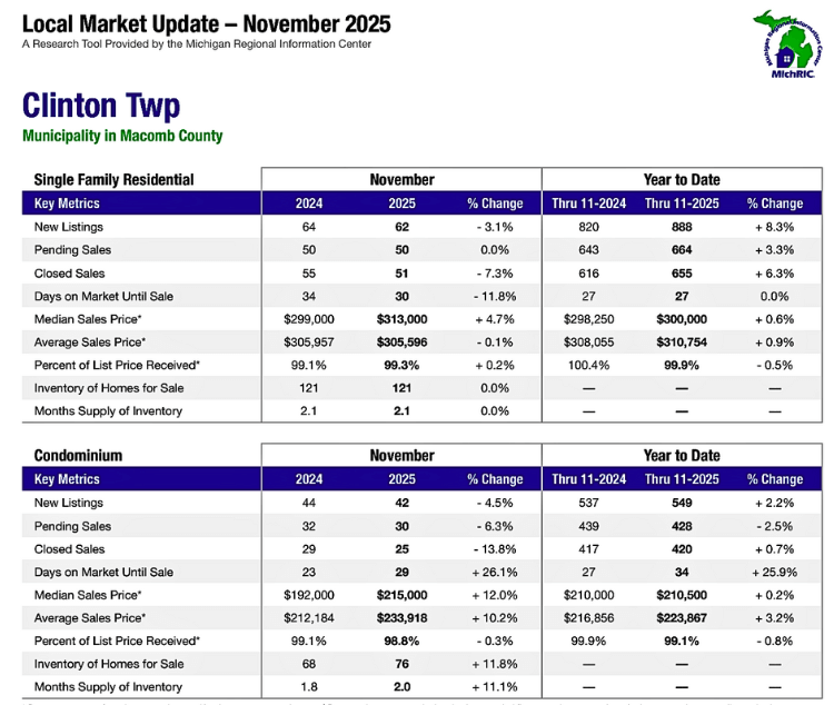Clinton Twp Housing Market Trends ~ December 2025 🔎📊