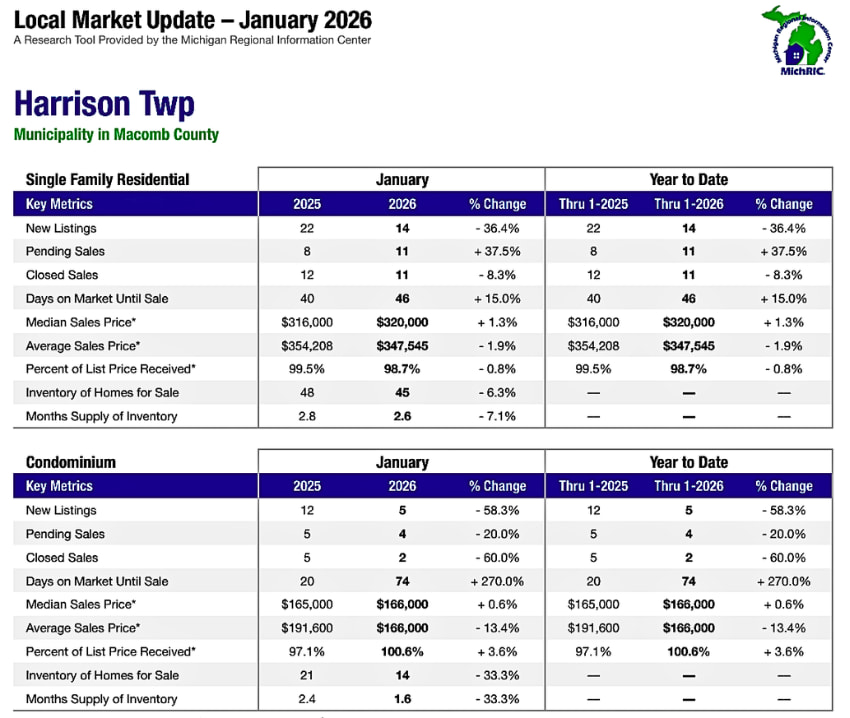 Harrison Twp MI Housing Market Trends ~ Feb. 2026🔍