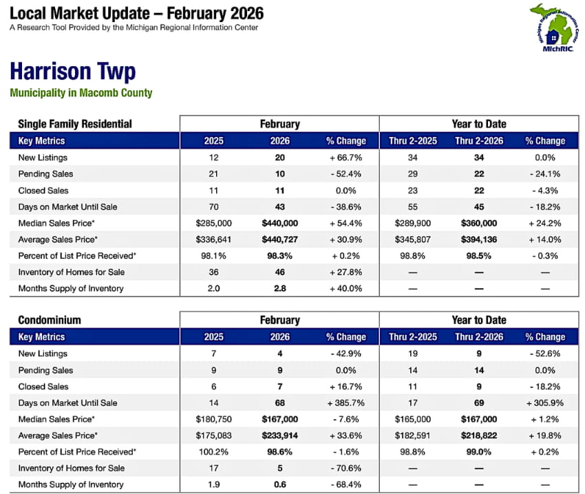Harrison Twp MI Housing Market Trends ~ March 2026