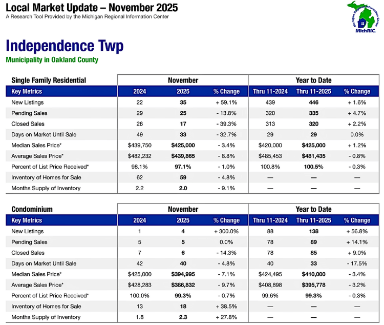 Independence Twp Housing Market Trends ~ December 2025 🔎📊