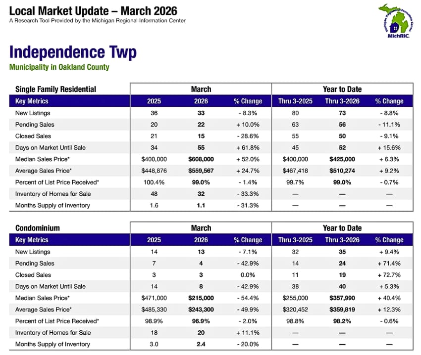 Independence Twp MI Housing Market Trends ~ Feb. 2026🔍