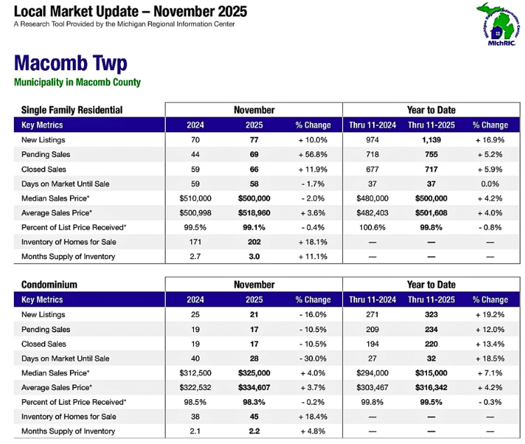 Macomb Twp Housing Market Trends ~ December 2025 🔎📊