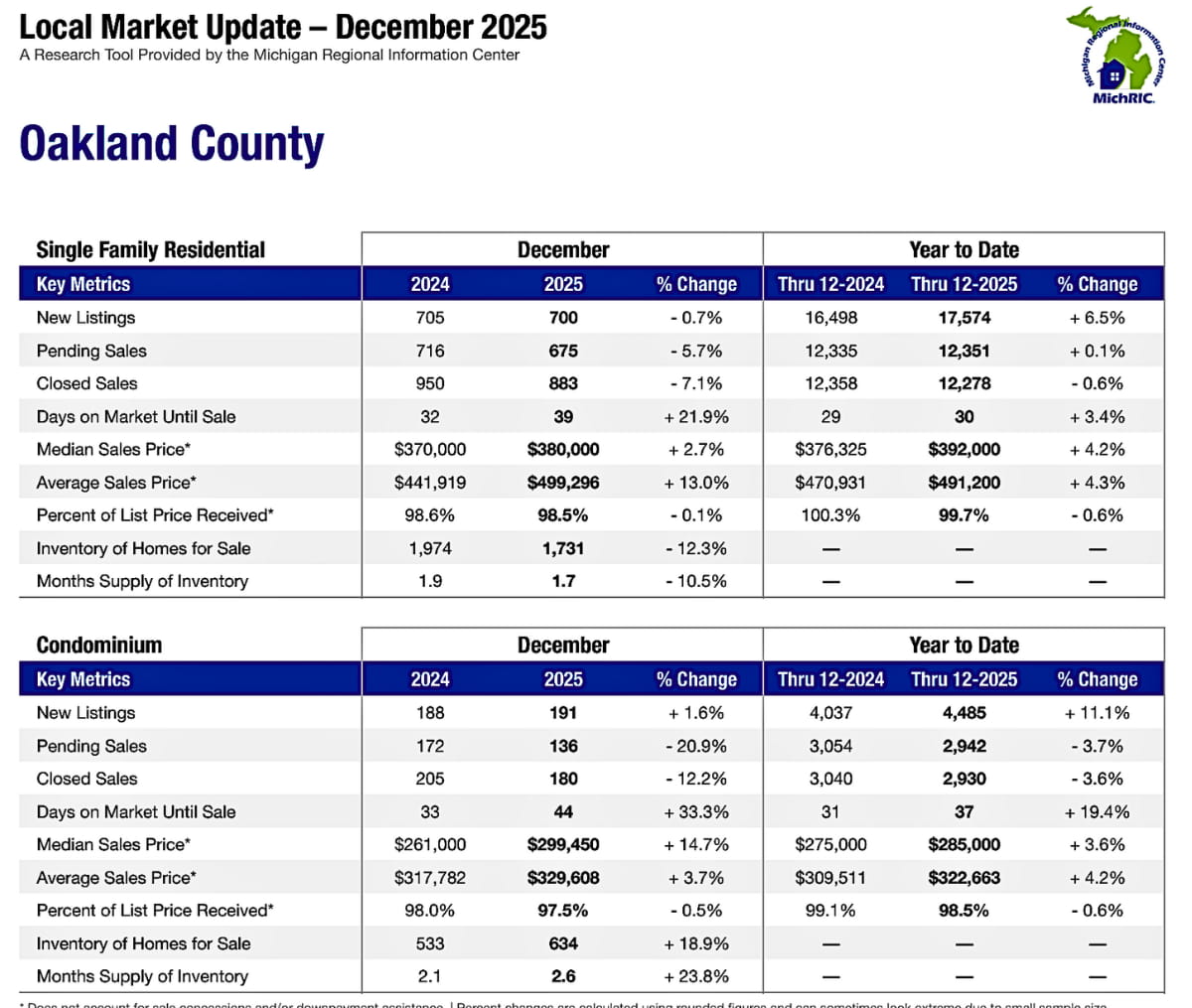 Oakland County Michigan Housing Market Trends January 2026 from Infosparks