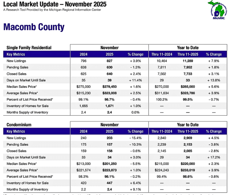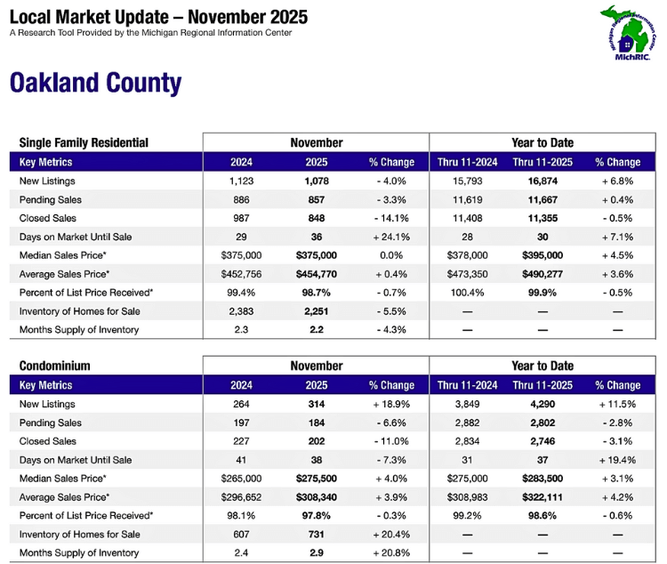 Metro Detroit Housing Market Trends by City ~ December 2025