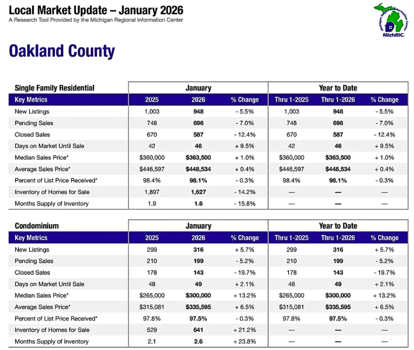 Metro Detroit MI Housing Market Trends Search by City – Feb. 2026 🔍