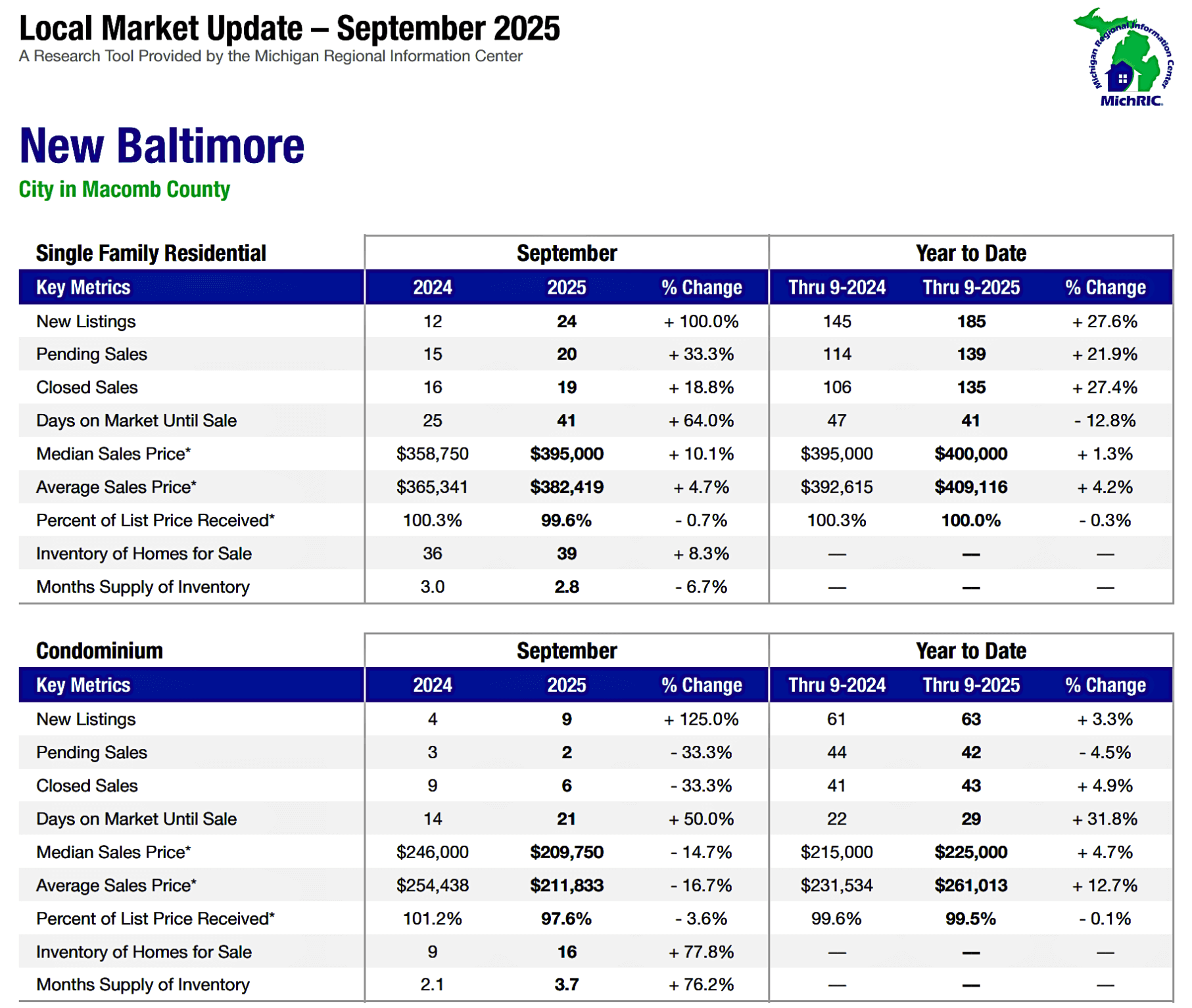 New Baltimore MI Home Prices & Real Estate Trends – October 2025