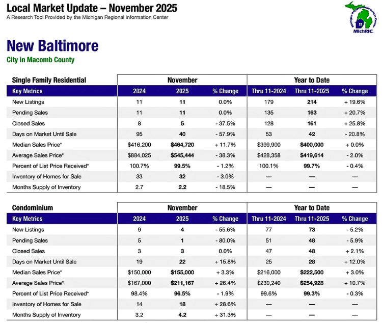 New Baltimore Housing Market Trends ~ December 2025 🔎📊