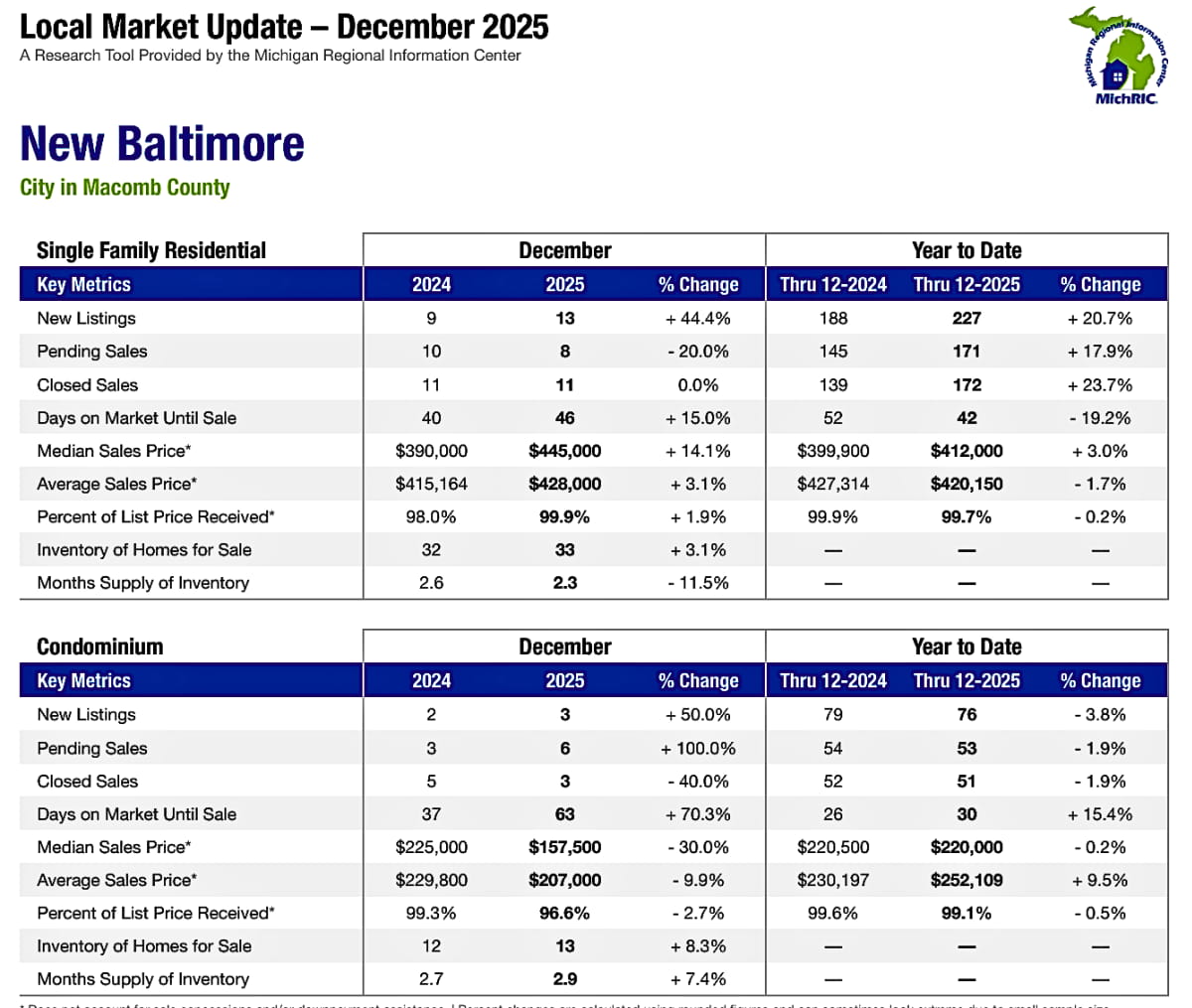 New Baltimore Housing Market Trends ~ January 2026🔍