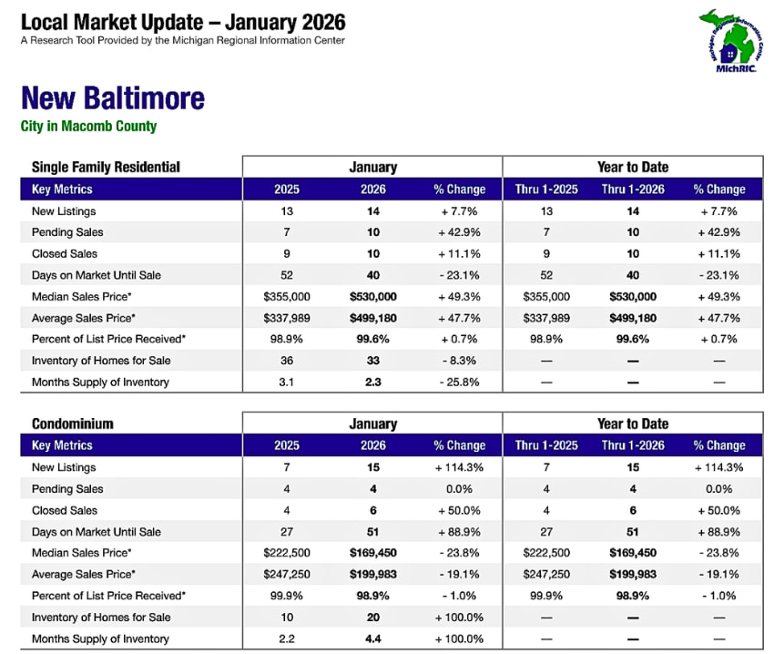 New Baltimore MI Housing Market Trends ~ Feb. 2026🔍