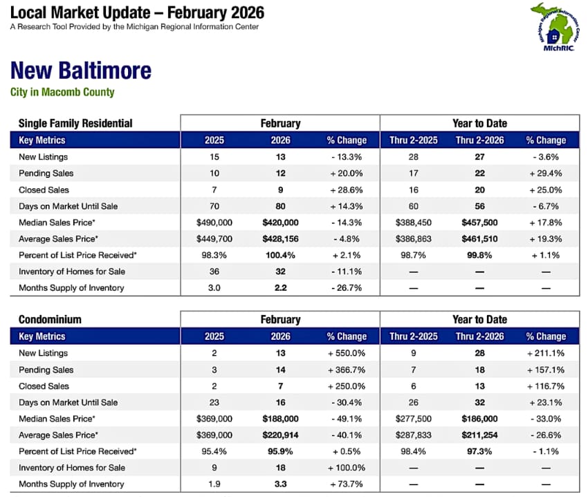 New Baltimore MI Housing Market Trends ~ March 2026