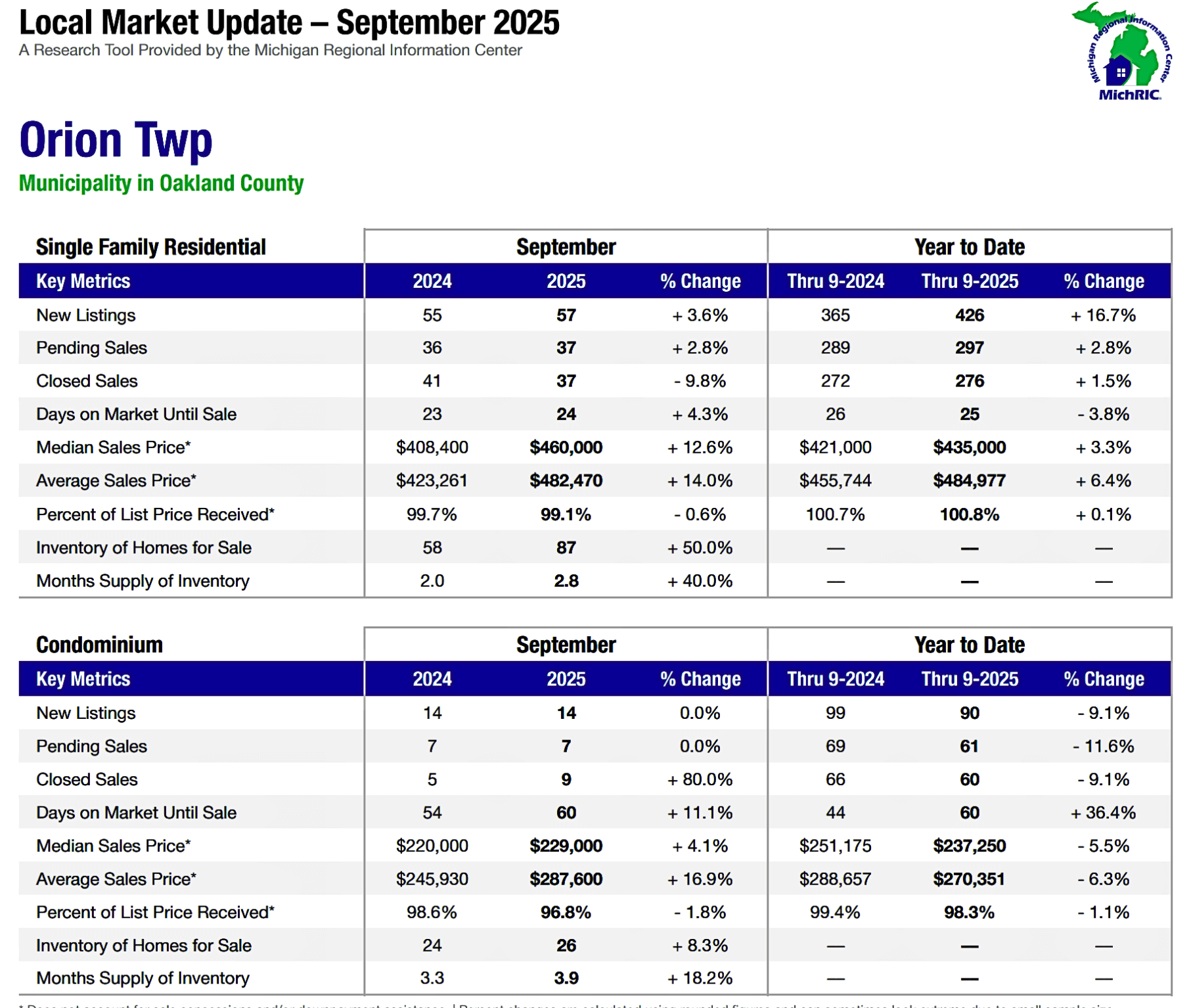 Orion Twp MI Home Prices & Real Estate Trends – October 2025