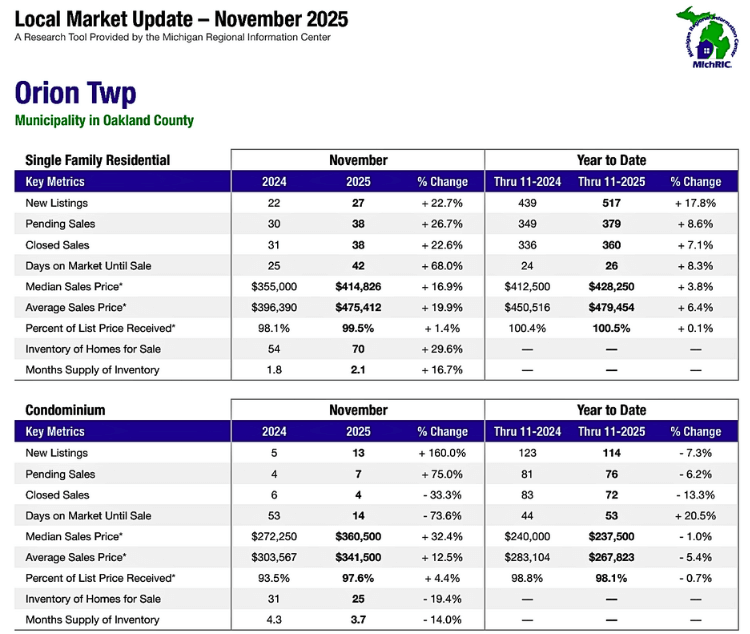 Orion Twp Housing Market Trends ~ December 2025 🔎📊