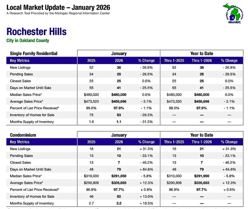 Rochester Hills MI Housing Market Trends ~ Feb. 2026🔍