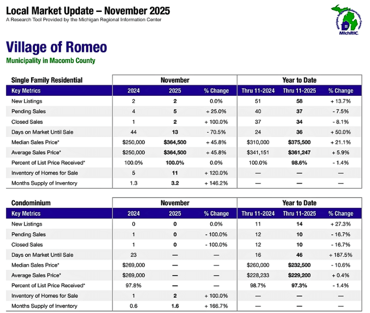 Romeo Housing Market Trends ~ December 2025 🔎📊