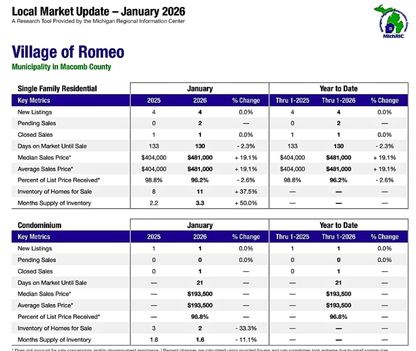Romeo MI Housing Market Trends ~ Feb. 2026🔍