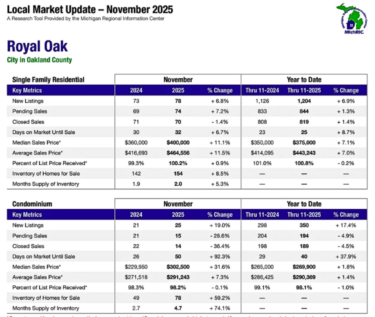 Royal Oak Housing Market Trends ~ December 2025 🔎📊