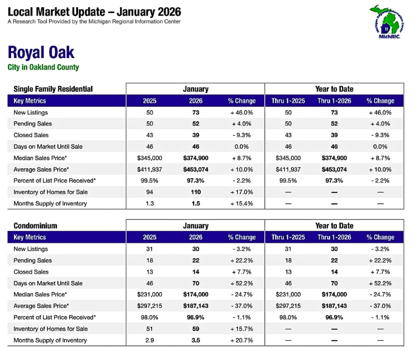 Royal Oak MI Housing Market Trends ~ Feb. 2026🔍