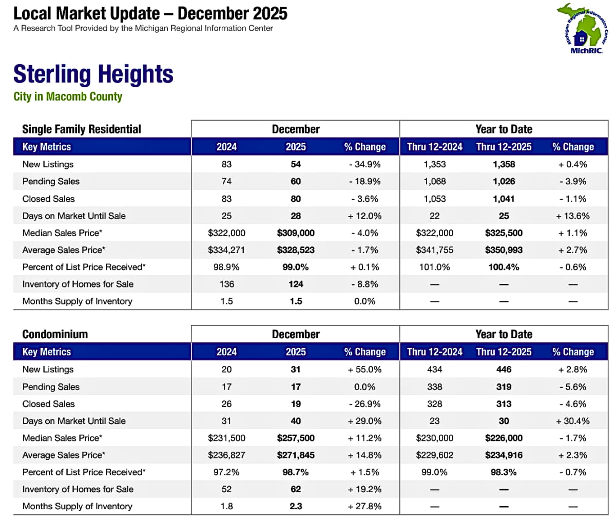 Sterling Heights Housing Market Trends ~ January 2026🔍