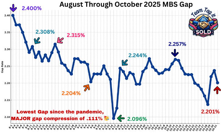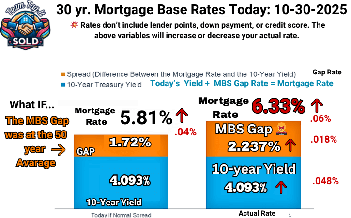 I’m keeping the WHY the same for today, as it is a carryover from 10-29-2025, when the Federal Reserve cut interest rates. Remember, mortgage rates are determined by the yield and the MBS gap, NOT the Federal Reserve.