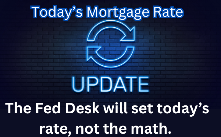 📰 Mortgage Daily News reports that MBS prices have increased slightly and could have a minimal impact on mortgage rates today. Today’s MBS prices spiked from yesterday’s 10:00 numbers, from 100.05 to 99.49. The Fed desk hasn’t been following the math, so the MBS prices shouldn’t matter at today’s rates; they’ll probably compress.