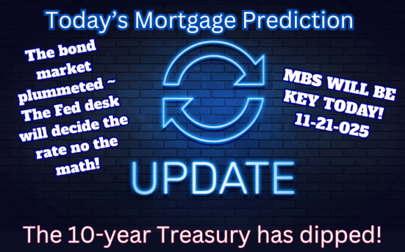 🔮 Today’s Mortgage Rate Prediction: Whiplash higher 11-21-2025 ~ Update @ 11:30🕦