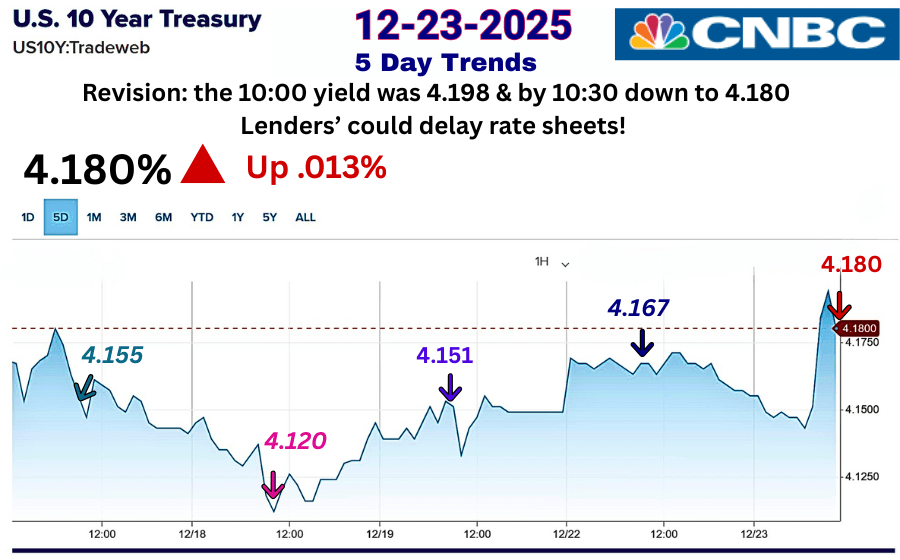 Today’s Mortgage Rates: What’s Driving the Change ~ Afternoon Update: 12-30-2025 by 1:00 🕐 Scroll for Rates for the past week.