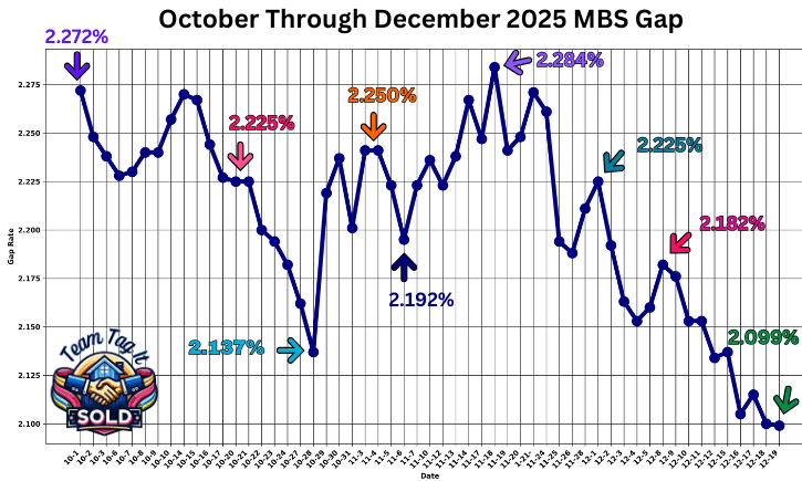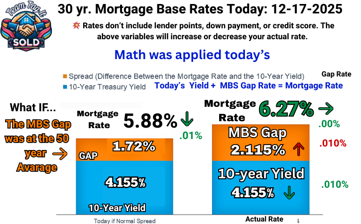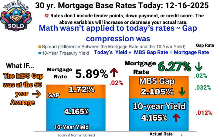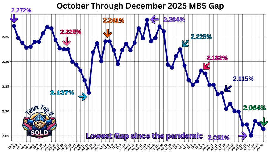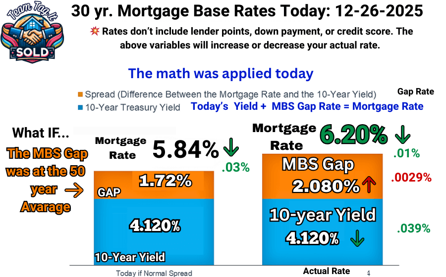 And that’s why mortgage rates are stuck in the middle. With yields holding above the 4s and refusing to break into the 3s, the only thing keeping rates from rising further is the FHFA stepping in to compress the MBS gap. Until White House spending policies shift and the Bureau of Labor Statistics restores confidence in the data 📊, this is the landscape we’re working with — and it’s why mortgage rates won’t move under 6% as we head into 2026.