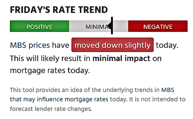 📰 Mortgage Daily News reports that MBS prices have moved down slightly and could have a minimal impact on Mortgage Rates today. MBS prices yesterday were at 99.70, and are down slightly to 99.65 today. The issue today is whether the gap will undergo a slight correction due to last week’s MBS compression. 🤷♀️