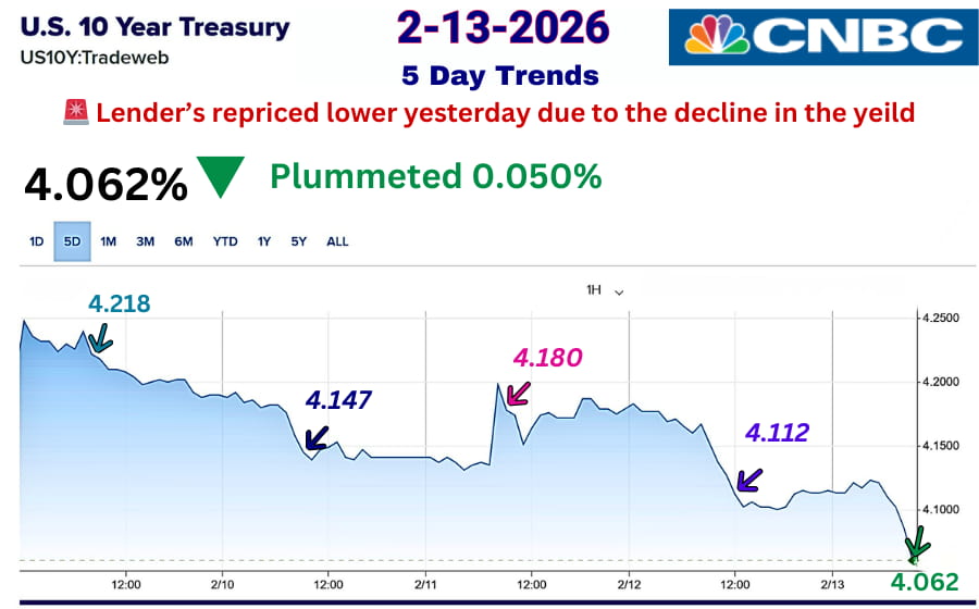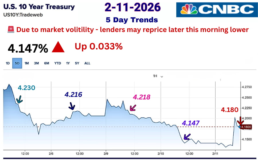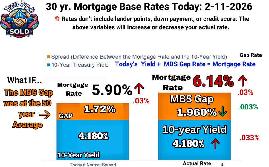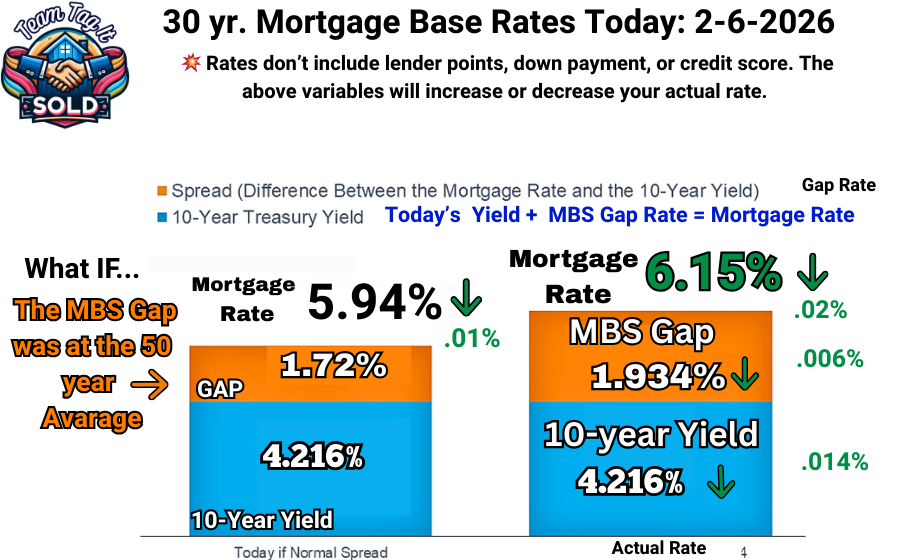 Next, we have a new problem: the White House is using tariffs as a weapon to get what it wants. The last fiasco, involving tariffs on countries that opposed the Greenland takeover, sent mortgage rates skyrocketing. WHY? Because countries hold Millions to Billions of our bond debt. When countries decide to sell bonds prematurely to get their message to the White House, their policies won’t be tolerated. That bond sell-off will cause the 10-year Treasury yield to spike, and mortgage rates will follow. The bond market is still volatile. If you understand the WHY, you can predict the next dip and save thousands over the lifetime of your loan.