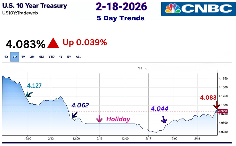 The 10-Year Treasury Yield Your Base – 2-18-2026 Updated by 10:30 🕥