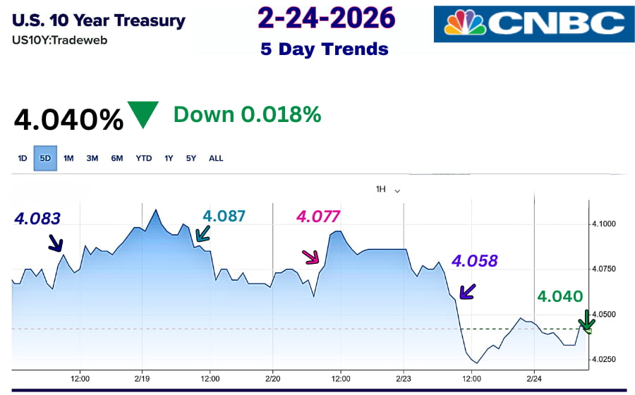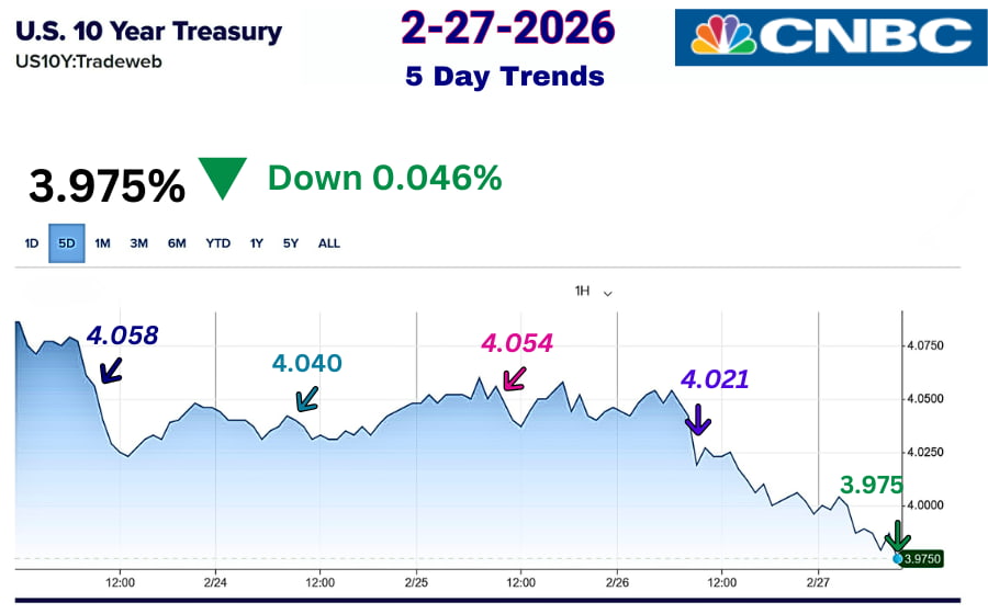 The 10-Year Treasury Yield Your Base – 2-27-2026 Updated by 10:30 🕥Dip or Spike?