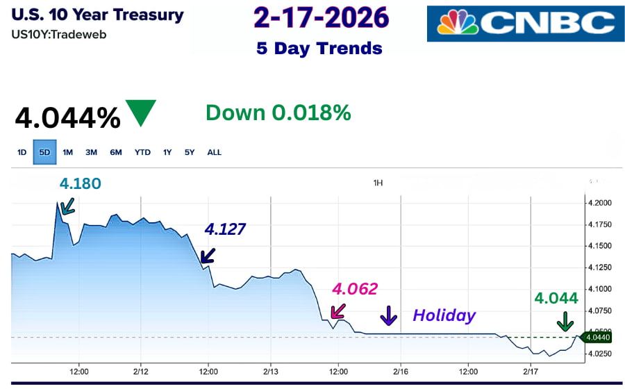 The 10-Year Treasury Yield Your Base – 2-17-2026 Updated by 10:30 🕥