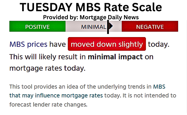 📰 Mortgage Daily News reports that MBS prices have moved down slightly and could have a minimal impact on Mortgage Rates today. 🚨 Due to the FHFA Fed Policies, they are using the MBS Gap to balance mortgage rates. FHFA is applying the math to the compression rate.