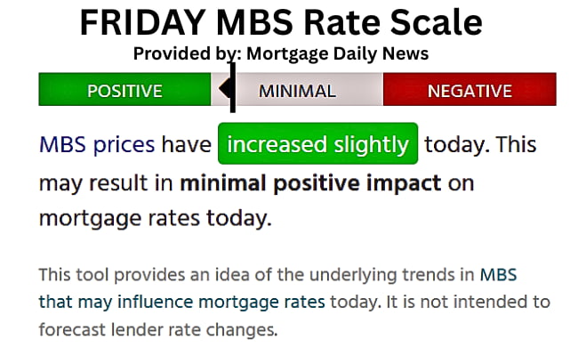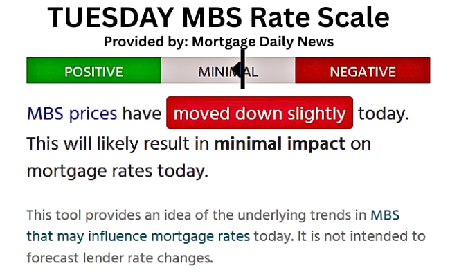 🔮 The prediction today will fall in the FHFA policy desk. WHY? Yesterday, the yield dipped, and the FHFA policy desk increased the gap to offset the decline. Today is day two of the dip, and the FHFA policy desk could do a gap adjustment lower today. The question is, how low will they go? 📰 Mortgage Daily News reports that MBS prices have moved down slightly and could have a minimal impact on Mortgage Rates today.