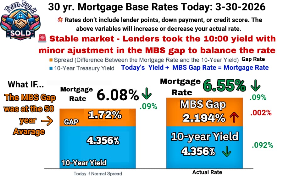 💥Base Rate: adjustment not made for your FICO score, your down payment, location, purchase price, and fees! access Mortgage Daily News for Quotes⤵️