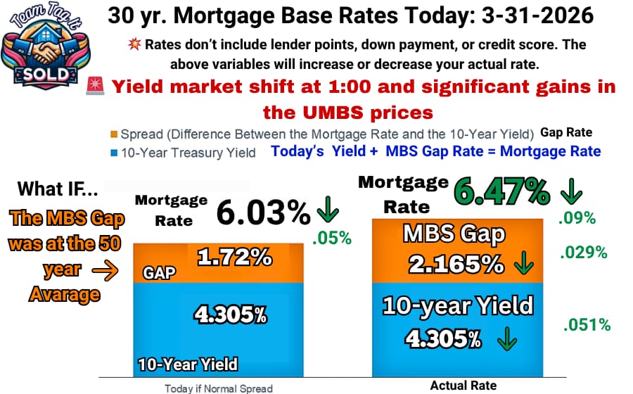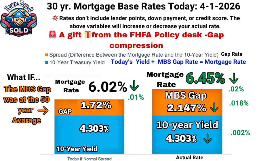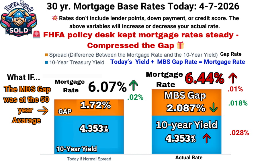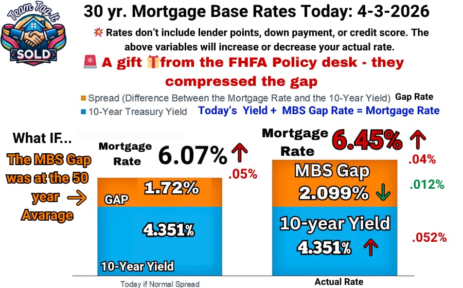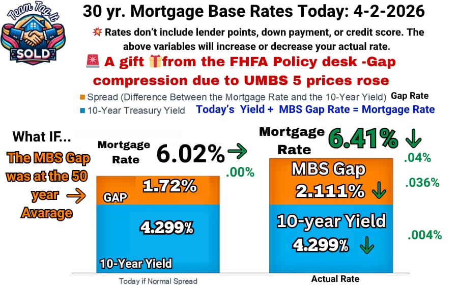 📌 The MBS gap hasn’t been consistent with the math since August. 🧮 The FHFA Policy Desk is determining the outcome of where they want rates to land. Remember, the Federal Reserve doesn’t determine mortgage rates; instead, the 10-year Treasury yield (set by Treasury Department bond sales) and the Mortgage-Backed Securities (MBS) gap (set by the Federal Housing Finance Agency) do.