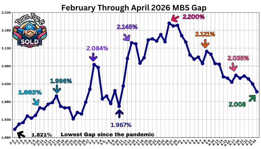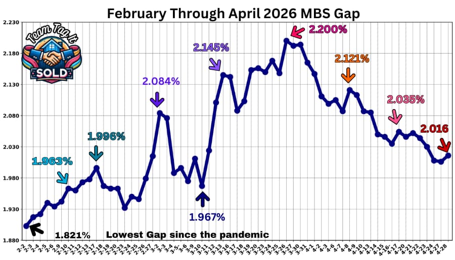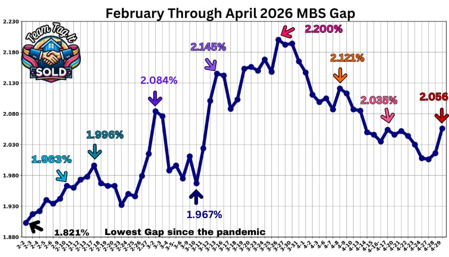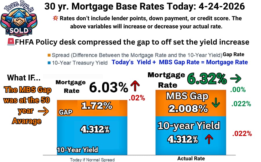 📌 The MBS gap hasn’t been consistent with the math since August 2025. 🧮 The FHFA Policy Desk is determining the outcome of where they want rates to land. Remember, the Federal Reserve doesn’t determine mortgage rates; instead, the 10-year Treasury yield (set by Treasury Department bond sales) and the Mortgage-Backed Securities (MBS) gap (set by the Federal Housing Finance Agency – FHFA) do.