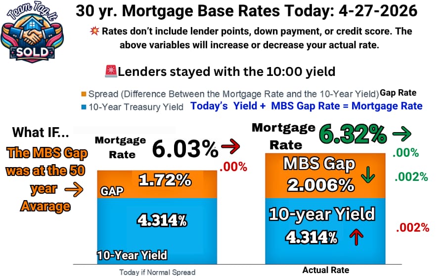 📌 Today’s MBS Gap: Hero 🦸 or Villain 🦹 Prediction Range 4-27-2026 – 6.37% to 6.39% – So Far no afternoon revision