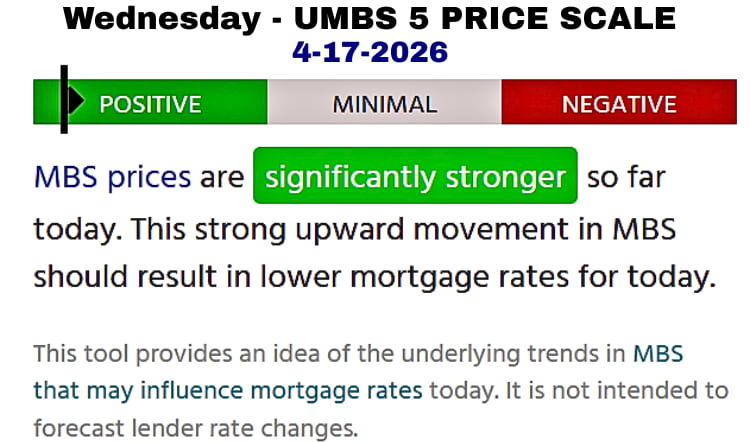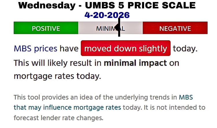 Today’s Math May Not Be Applied: The FHFA policy desk will decide whether to widen or narrow the Yield spread to stabilize rates. If they don’t make ledger adjustments and apply the math, the Yield at 4.236%, plus the MBS gap -0.009 (2.024%), would put mortgage rates slightly lower at 6.26%. If the FHFA Policy desk actually applies the UMBS 5 increase of -.026% (2.004%), plus the Yield at 4.236%, mortgage rates would be lower at 6.24%