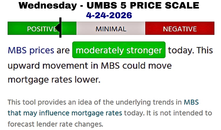 The bond and securities markets are reacting to the headlines, and the FHFA Policy desk is keeping a lid on the Yo-Yo effect. Today, there was no change even though the yield increased. Today, the UMBS Prices were flat, and the FHFA Policy desk compressed the gap to offset the rise in the yield as predicted for day 3. The headlines are moving faster than Wall Street can determine the risk. Today, investors are keeping an eye on the conflict and peace talks. Keep in mind, just because Iran and the headlines say the Straits are open, only the insurance companies will determine if they will insure the ship that passes through. Normal shipping has not begun, and this is far from DONE! Check back to see whether the lender has revised the rates or is ignoring the noise.