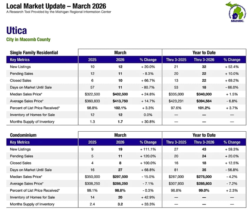 Understanding Utica MI Housing Market Trends helps you make smart, timely decisions whether you’re buying or selling a home. You’ll have access to real-time data from the FLEX Multiple Listing Service (MLS), powered by InfoSparks®. These are the same insights professionals use to track pricing, demand, and inventory. Let’s break down what matters most, so you can move forward with clarity and confidence when buying or selling a home.