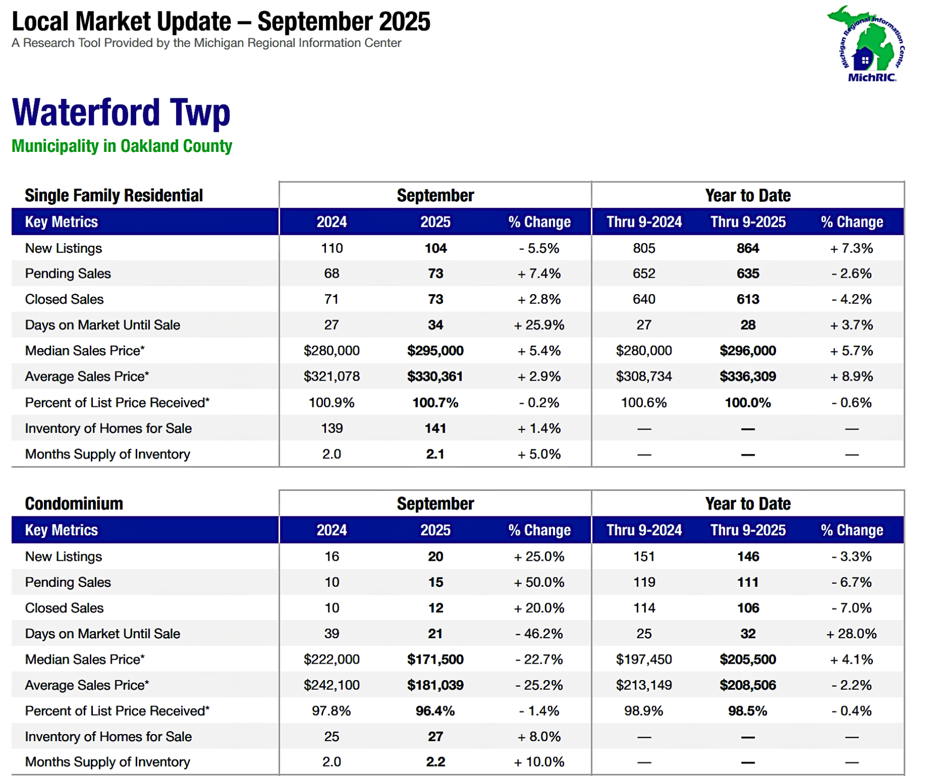 Waterford Twp MI Home Prices & Real Estate Trends ~ October 2025